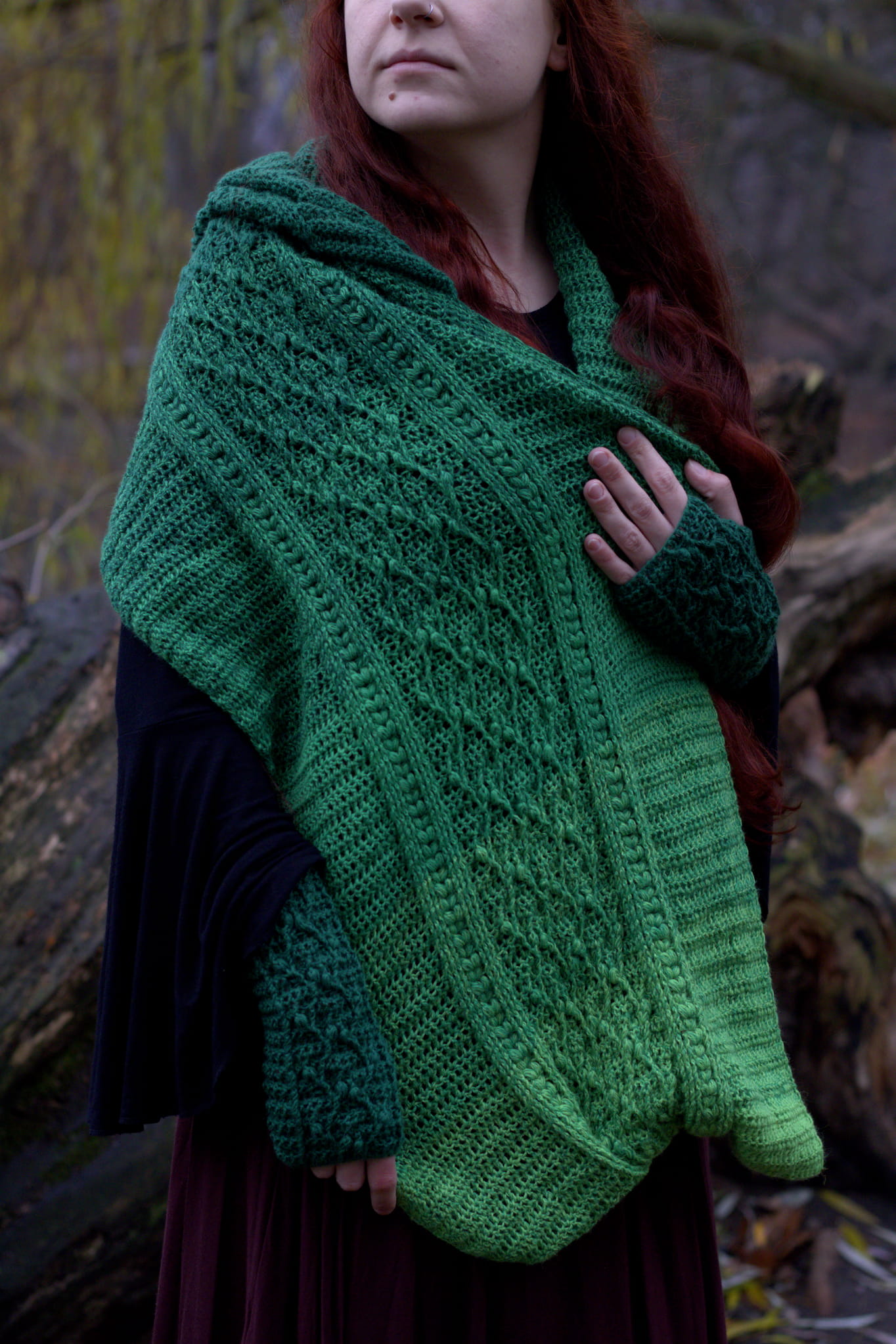 Na szal potrzeba 1800–2000 m włóczki + ok. 250–300 m na kaptur.
