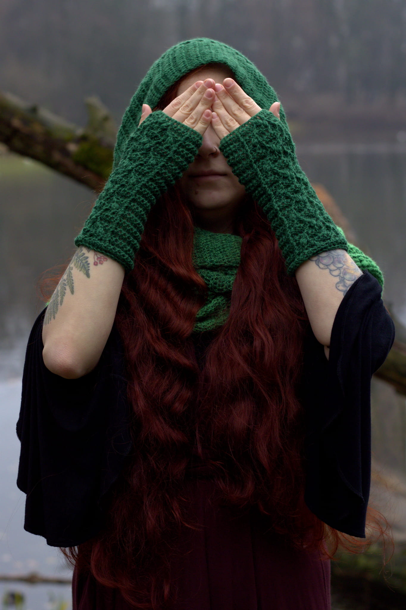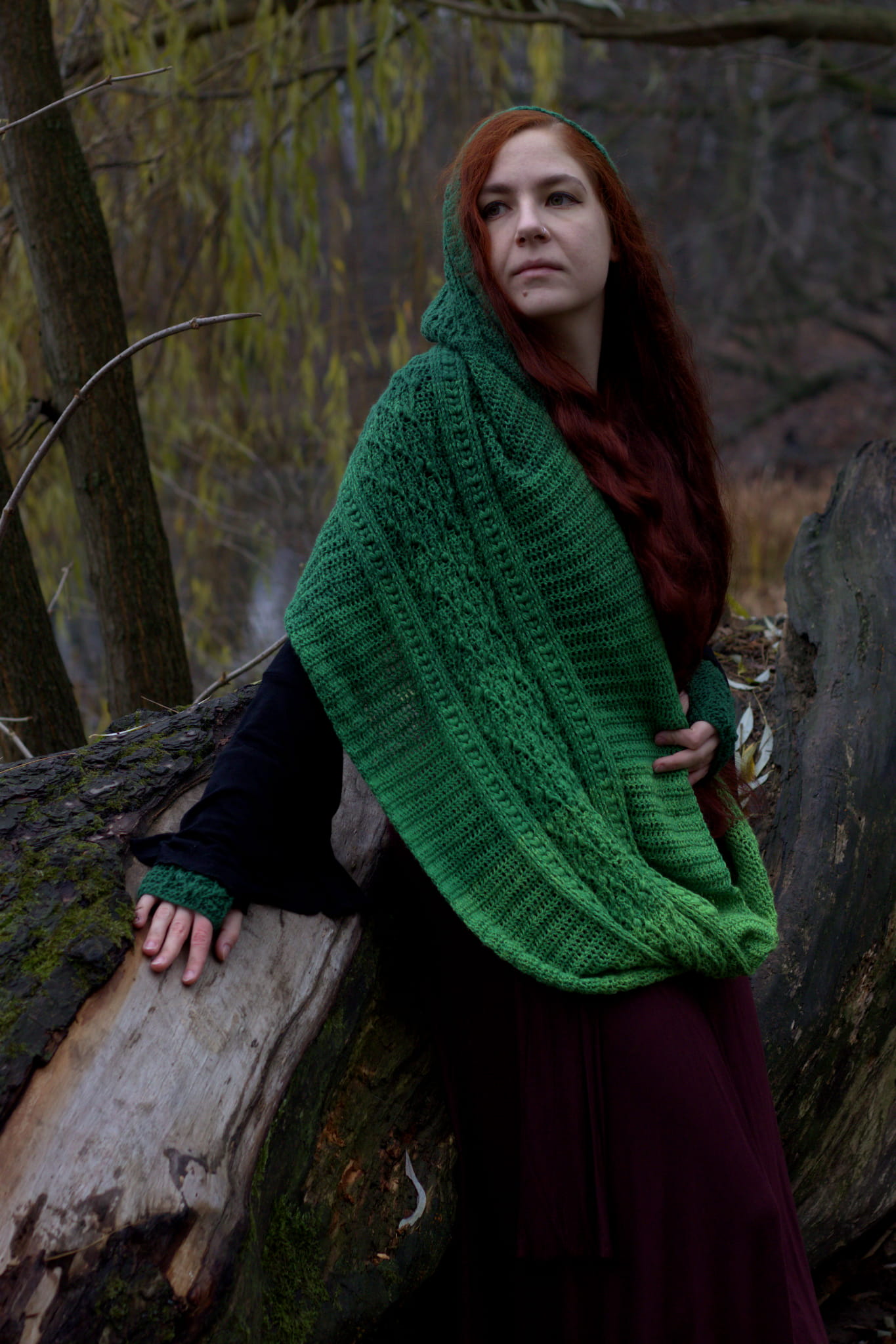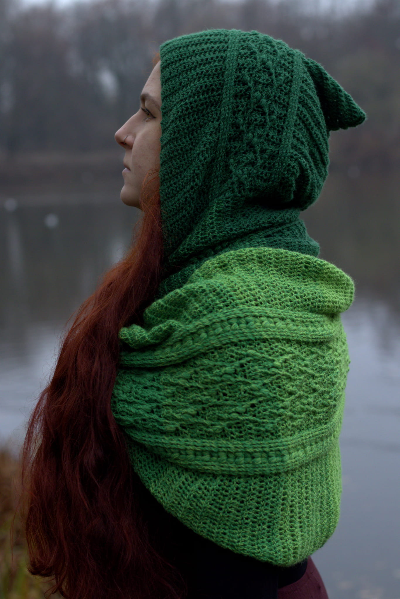 Szyszymora to szydełkowy wzór na komin z kapturem, szal z kapturem i mitenki. Ozdobny roślinny motyw we wzorze nawiązuje do bordiury z mojego wzoru Walpurgia, a nazwa odnosi się do słowiańskiego demona.